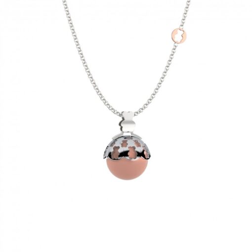 Delicata collana della collezione Nanàn Bijou in puro argento 925. Come pendete un dolce orsetto con una sfera in metallo smaltata in rosa.