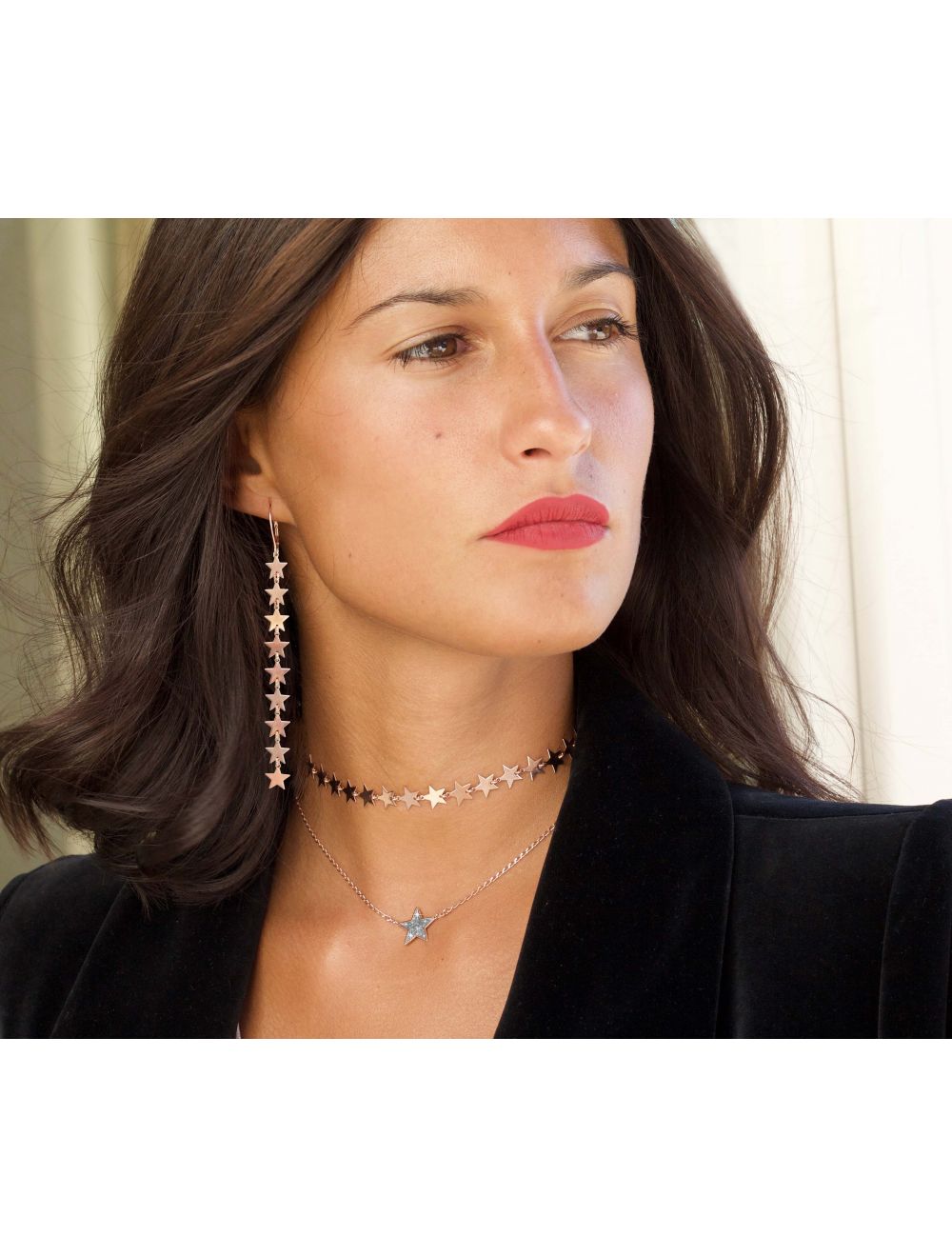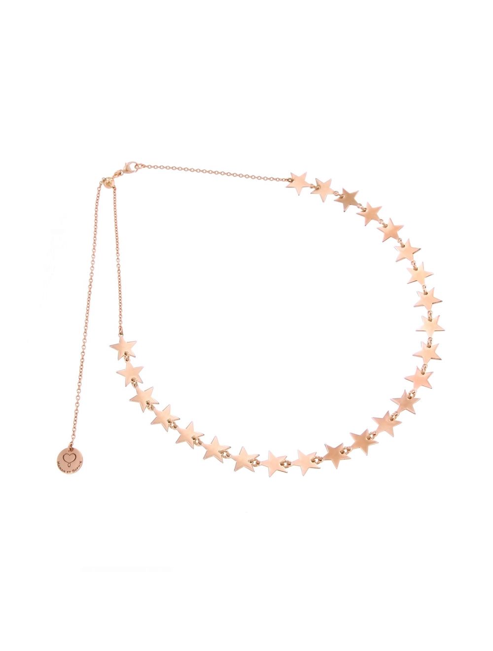 Collana girocollo realizzata con catena di argento 925 placcato in oro rosa ad alto spessore ed alta resistenza come le ventiquattro stelle di 8 mm.