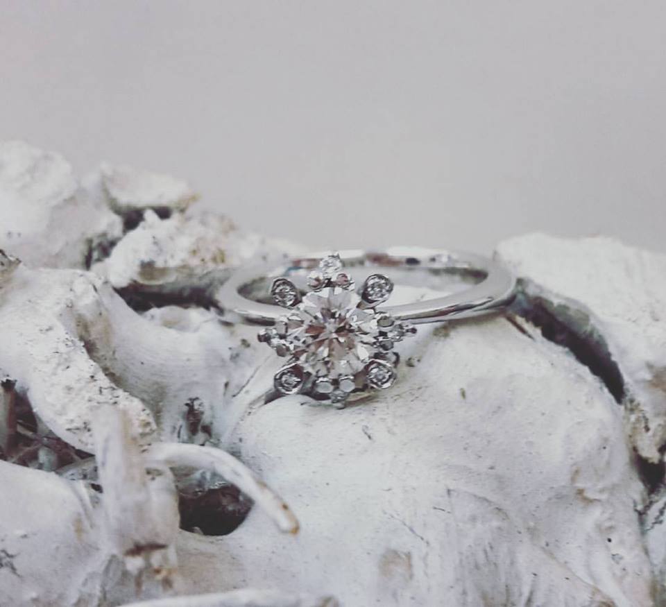Anello di nostra produzione in oro bianco 18 kt con diamanti naturali ct0.04 VSI G e diamanti 0,61 USI G.